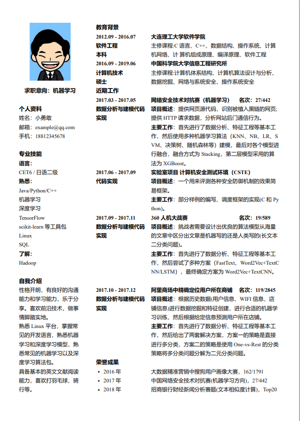 个性化卡通头像简历,色彩搭配活泼,适合年轻求职者和创意行业人才