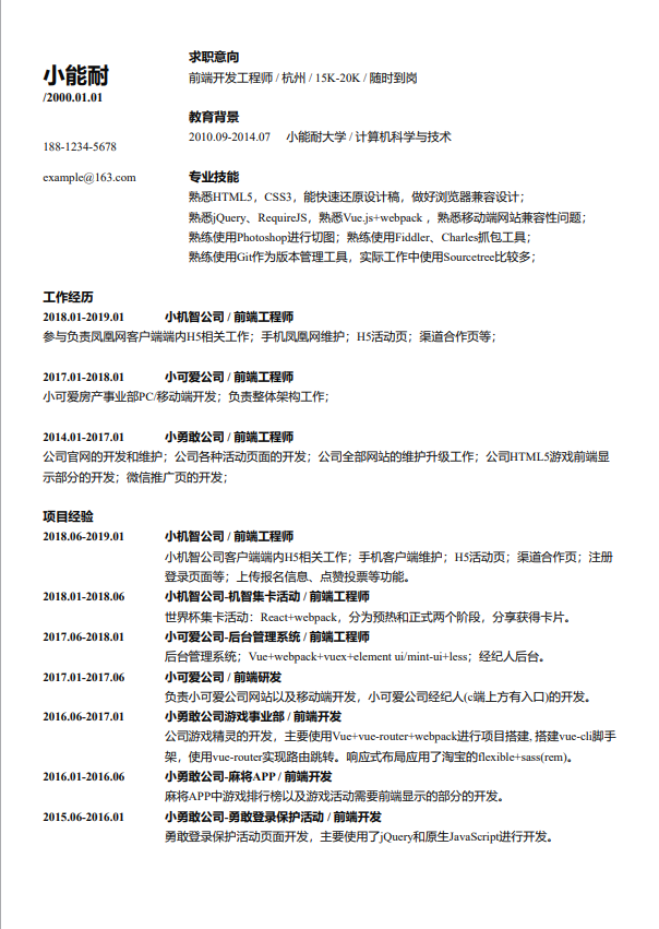 简约现代的设计风格,强调工作项目经验,适合有丰富经验的前端开发工程师